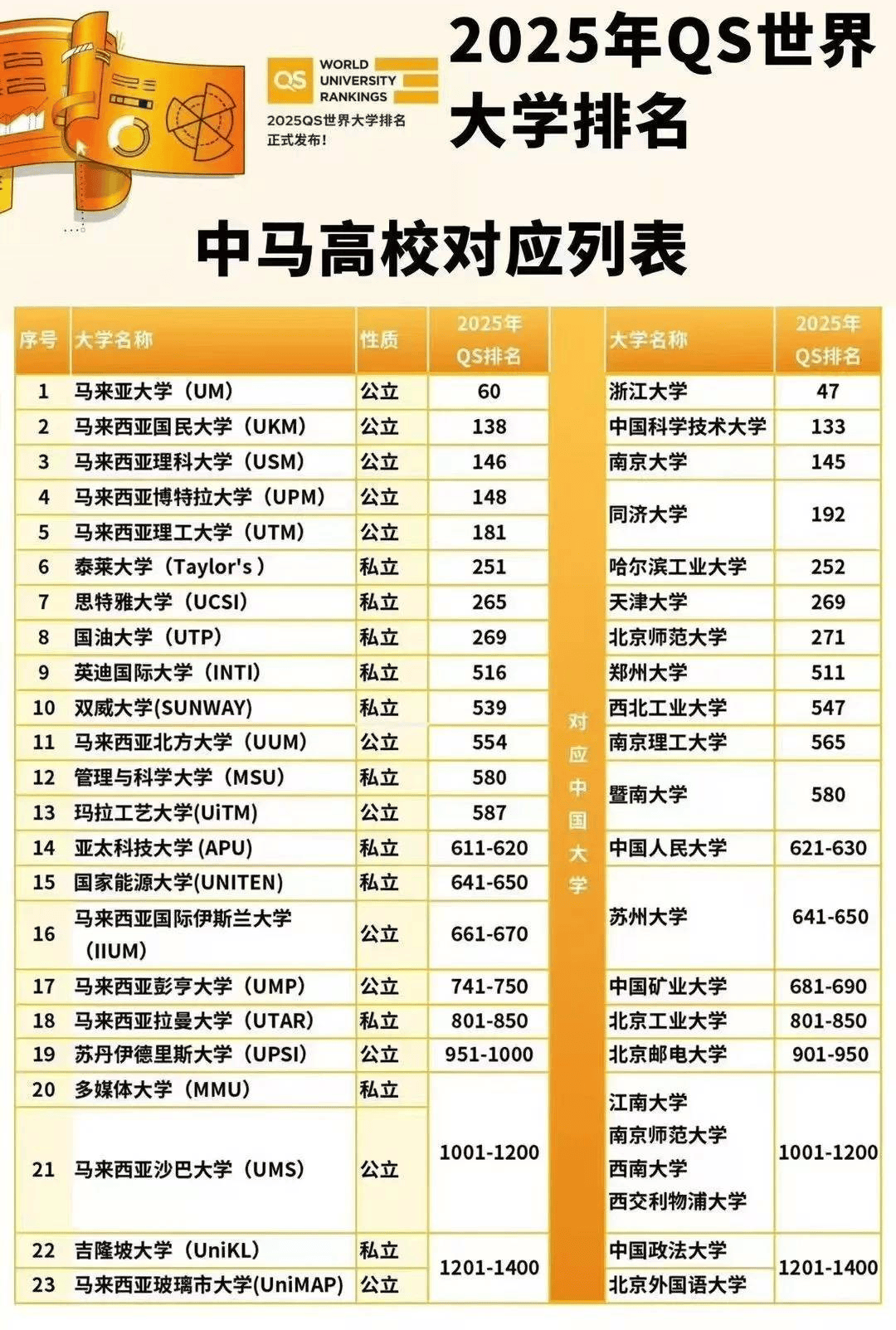 马来西亚留学征询核心电线 年江苏高考,物理类 463 分、汗青类 482 分的本科线,让不少学子的本科梦遇阻;全国 1335 万考生同台竞技,国内升学赛道照旧拥堵。若成就不抱负,985 高校国际本科马来西亚项目是条突围之。马来西亚名校膏火每年 2-3 万,性价比远超大都留学国度。院校采用全英文讲授,入学无需雅思托福,通过校内测试后分阶进修言语,日常交换取讲堂浸湿中轻松提拔。用亲平易近成本拿国际名校学位,学历受全球承认,比正在国内纠结分数更能把握将来自动权。 教育超牛:2025 QS 排名中,28 所大学上榜,5 所进前 200。英联邦教育系统,全英文讲授,双联课程让你轻松拿欧美名校文凭。 避开高考独木桥:部门国际本科项目不强制要求高考绩绩,可通过言语成就(如雅思/托福)、校方入学测验或高中成就申请,为高考失利或非普高学生供给更多机遇。无缝跟尾海外名校:完成国内阶段进修后,达到要求可曲升合做海外大学(如英美澳加等),部门项目以至供给世界TOP 100大学的升学通道。费用劣势:国内阶段膏火远低于间接出国(凡是每年5万-15万人平易近币),2-3年后再出国,可节流约30%-50%的总费用。降低顺应成本:国内阶段的全英文或双语讲授、国际化课程系统帮帮学生提前顺应海外讲授模式,削减间接出国的文化冲击。强化英语能力:课程凡是采用英文教材、外教讲课,言语优于通俗本科,特别适合言语根本亏弱但打算留学的学生。过渡式进修:国内阶段沉视学术写做、性思维等大学必备技术的培育,避免间接出国因学术差别导致的挂科风险。双学位或海外学位:部门项目结业可获得中外双学位,或间接获海外大学文凭(教育部可认证),合作力优于国内通俗本科。国际化布景:海外履历、跨文化沟通能力及国际人脉资本,正在求职(特别外企、跨国机构)或申请海外硕士时更具劣势。 马来亚大学:1905年建校,公立研究型分析大学,是环承平洋等四大联盟,以文理和医学著称,17个学科进入世界前100,2025年QS排名全球第60。五大公立名校之一。学科全面,被泰晤士评为世界科技类百强,2025年QS排名第138。马来西亚理科大学:1969年建校,公立分析大学,有“亚洲花圃大学”佳誉 ,是APEX打算高校,经济学等为国度沉点学科,2025年QS排名第146。马来西亚博特拉大学:1931年建校,养分学等专业马来西亚第一,两学院获AACSB认证,多学科进入世界前200,2025年QS排名第148。马来西亚理工大学:1984年建校,公立研究型大学,从校区正在新山。全英讲课,2025年QS排名第181。伍伦贡大学马来西亚校区:1951年建校,消息手艺等范畴全澳顶尖,计较机学院是南半球主要科研核心,2025年QS排名第167。 会计取金融:博特拉大学(AACSB认证)、泰莱大学(工商办理世界第97)聚焦财政阐发取贸易实践能力培育。酒店办理:泰莱大学(世界第16)、思特雅大学(世界前100)依托行业资本,强化实操取办理技术。电子工程:博特拉大学(世界学术200强)、理工大学(全英讲课+前沿手艺)侧沉电设想取通信系统能力。机械工程:博特拉大学(世界学术200强内)、理科大学(尝试取科研劣势)笼盖机械设想取从动化范畴。文学取英语:博特拉大学(世界学术200强)、马来亚大学(讲授资本丰硕)沉视言语阐发取文学素养。艺术学:理科大学(国度沉点学科)从攻视觉艺术,思特雅大学(表演艺术世界第42)为顶尖音乐学府。 院校层面,可对接国立大学、理科大学等顶尖公立校及伍伦贡大学分校,学历获国际取国内双沉承认;升学层面,1 年预科加 3 年本科后,1 年即可完成硕士学业,5 年实现 “本硕连读”,较国内学制缩短 2-3 年。嘿!逃梦的少年们!你能否巴望体验纷歧样的大学糊口?能否想正在国际化的舞台上闪闪发光?数据告诉你,超 2 万中国粹长学姐曾经选择马来西亚留学!正在这里,有多元的文化、出色的讲堂、无限的机缘。别再期待,跟上潮水,属于你的芳华留学之旅!985/211 登科率持续走低!当国内升学 “千军万马过独木桥”,不如选择 985 国际本科 ——?。