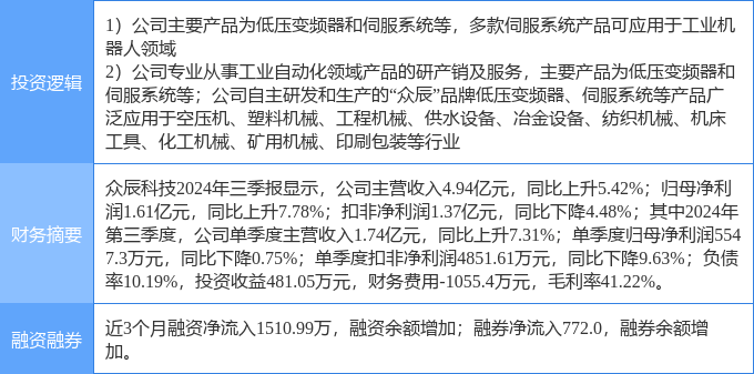该股为智能制制,机械人概念热股,当日智能制制概念上涨0。35%,工业从动化概念上涨0。07%。 证券之星动静,众辰科技3月3日涨停收盘,收盘价45。87元。未打开涨停,截止收盘封单资金为7629。56万元,占其畅通市值3。94%。 3月3日的资金流向数据方面,从力资金净流入3530。14万元,占总成交额23。89%,逛资资金净流出2067。7万元,占总成交额13。99%,散户资金净流出1462。43万元。 以上内容为证券之星据息拾掇,由智能算法生成(网信算备240019号),不形成投资。前往搜狐。